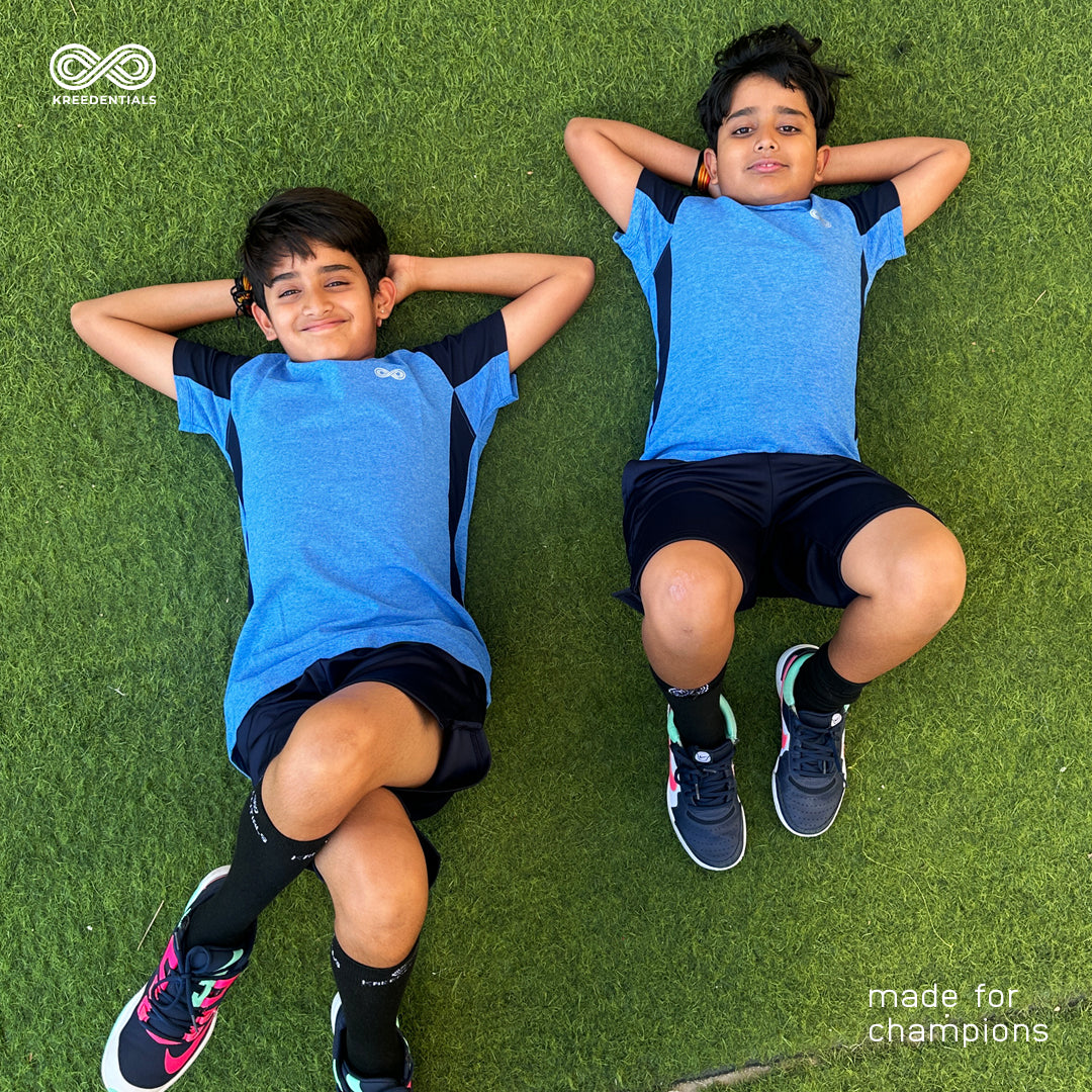 Kreedentials - Complete Melange Blue Sports Apparel Set for Kids - T-Shirt, Shorts & Socks